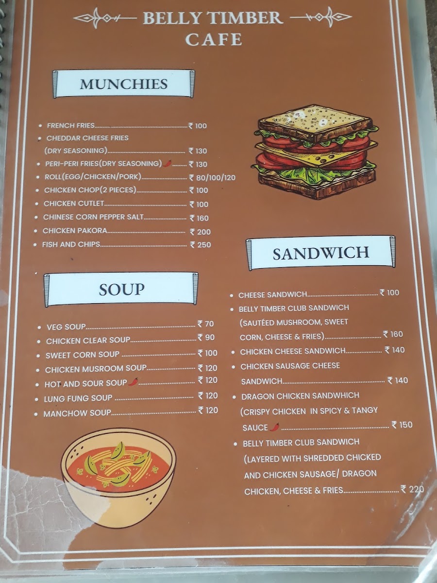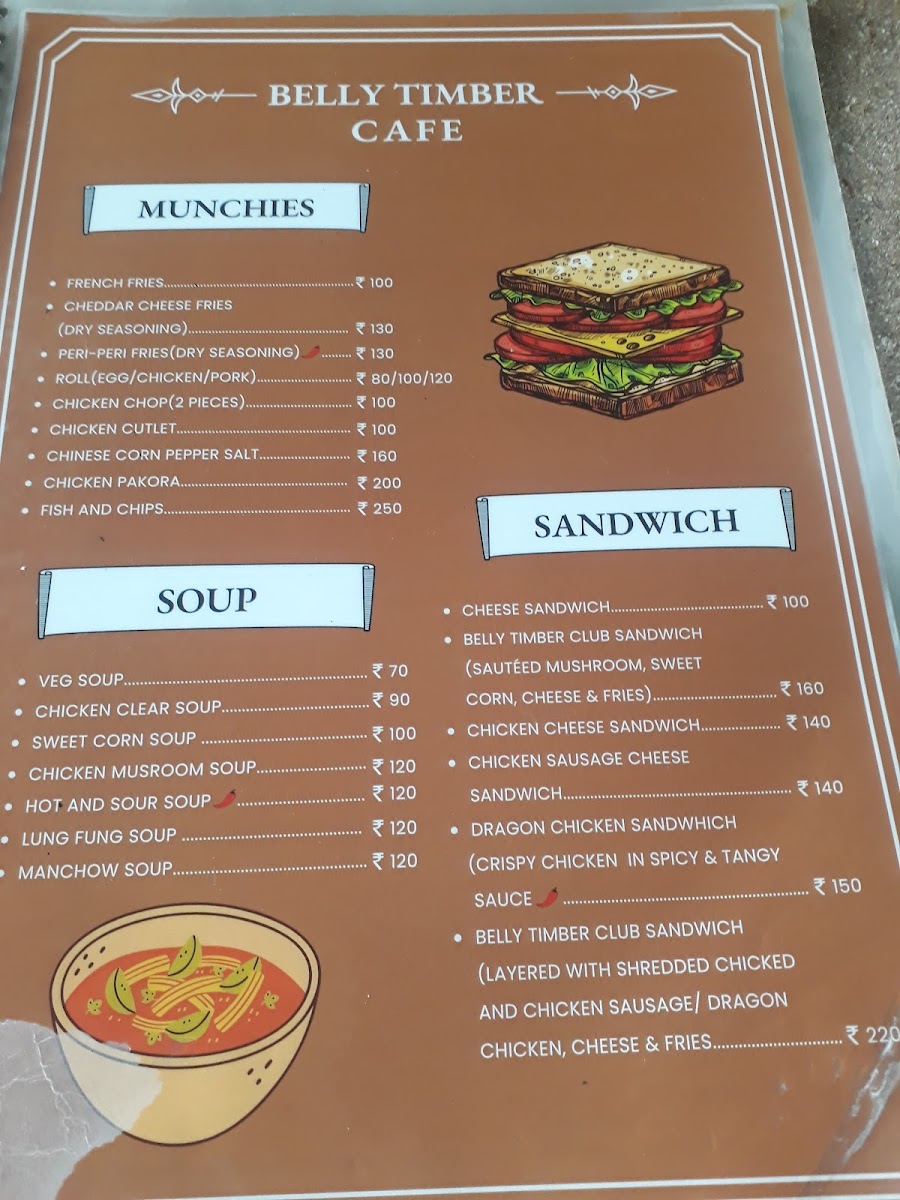 Welcome to Belly Timber, a charming café nestled in the heart of Jowai, Meghalaya. This culinary haven offers a well-curated menu that caters to diverse palates, from cozy comfort food to delectable gourmet options.