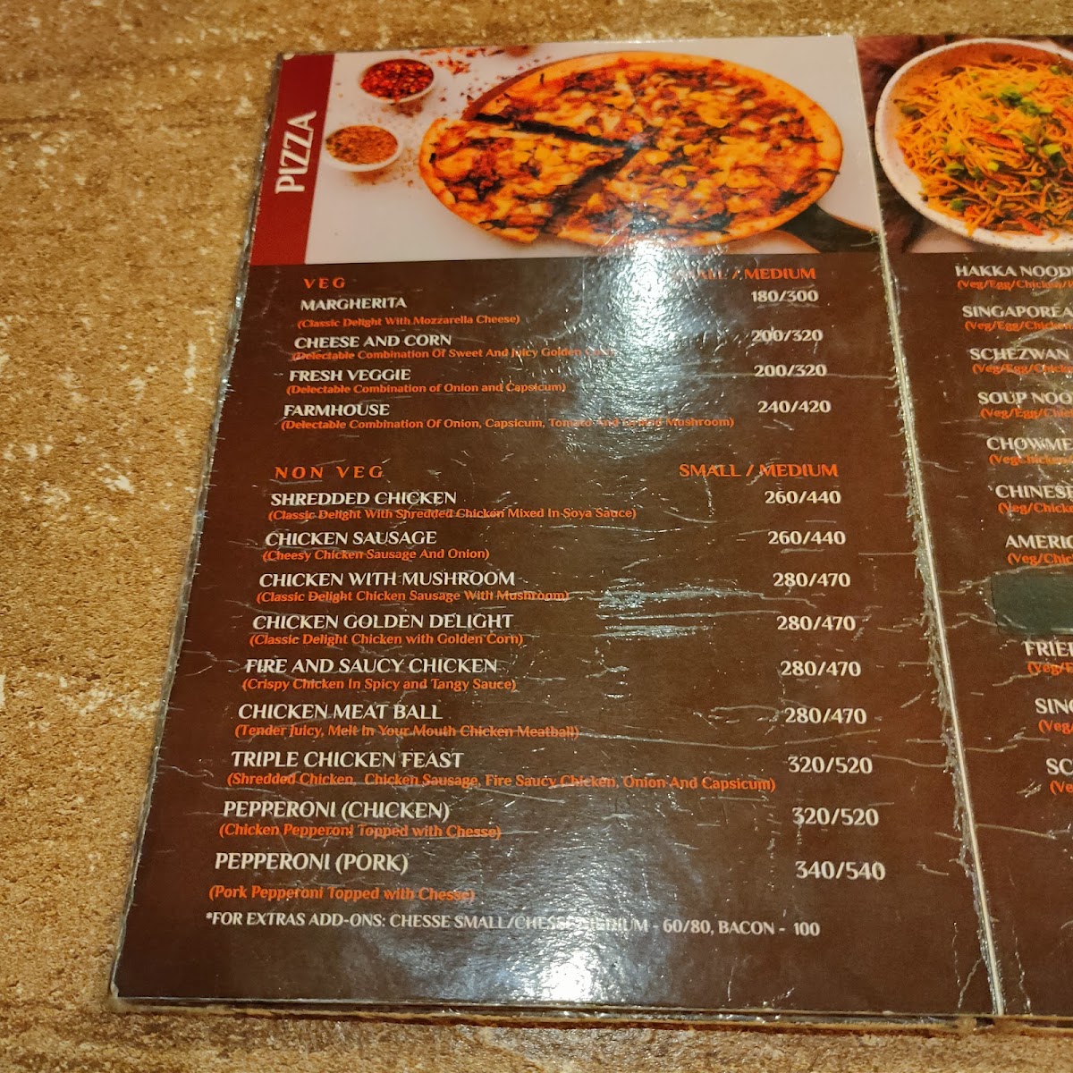 Start your meal with warming soups like the Chicken Clear Soup or the flavorful Hot & Sour Soup, each priced affordably to ensure a delightful dining experience. For mains, the café shines with its standout Chicken Pepperoni Pizza, celebrated as the best in town, and various succulent chicken dishes such as Fire And Saucy Chicken and Triple Chicken Feast that tantalize the taste buds.